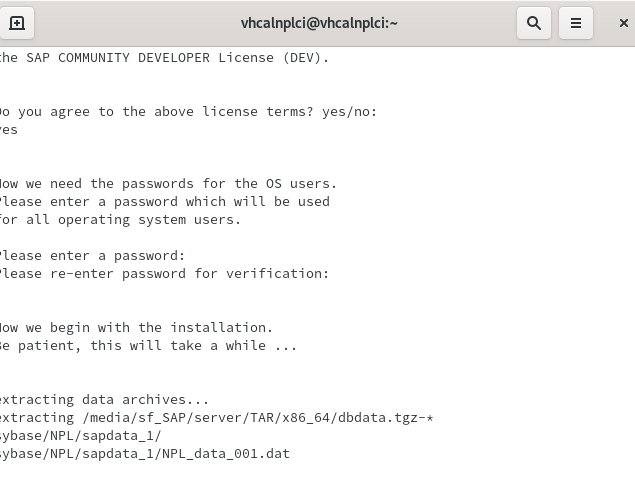 - 패스워드 한번 더 입력하면 설치가 시작된다.