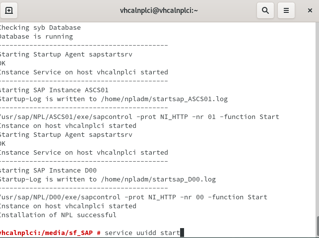 - "service uuidd start"를 입력하여 uuidd 데몬 서비스를 올리고 SAP GUI를 실행하면 서버 접속이 가능하다.