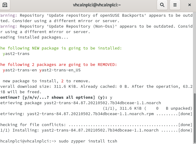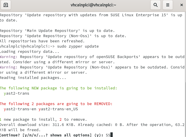 - sudo zypper update 입력 하면 위 화면이 나타난다.